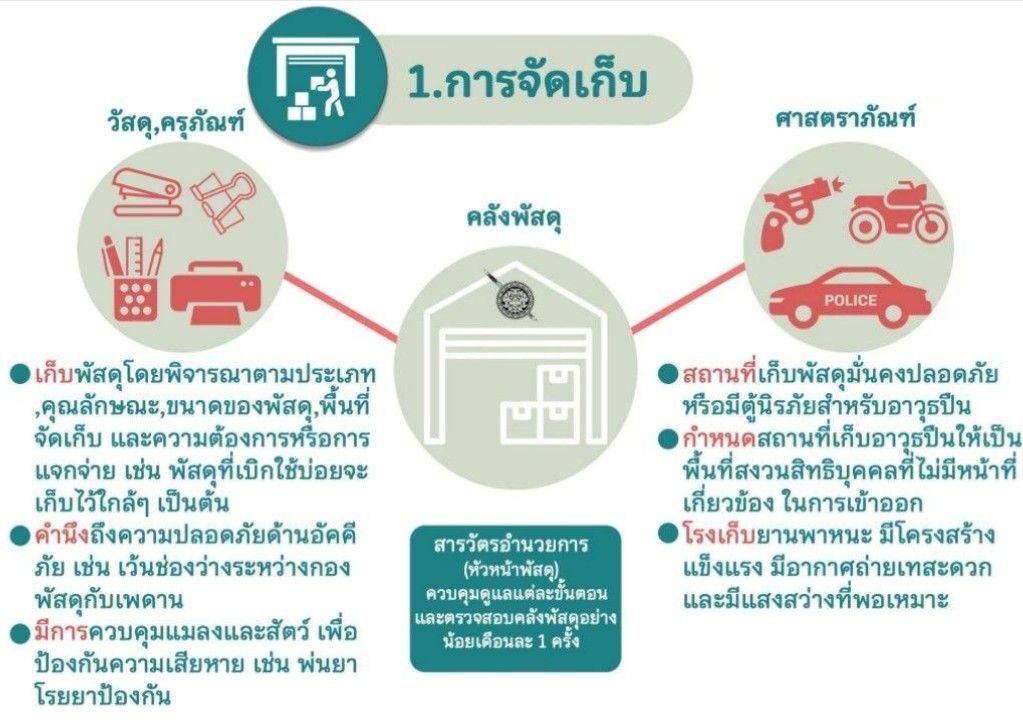 การจัดการทรัพย์สินของราชการ ของบริจาค การจัดเก็บของกลาง และสำนวนการสอบสวนคดีอาญาและคดีจราจร