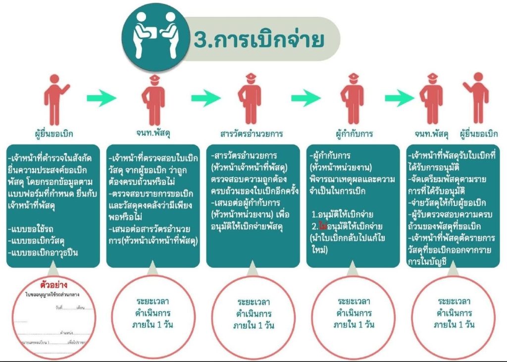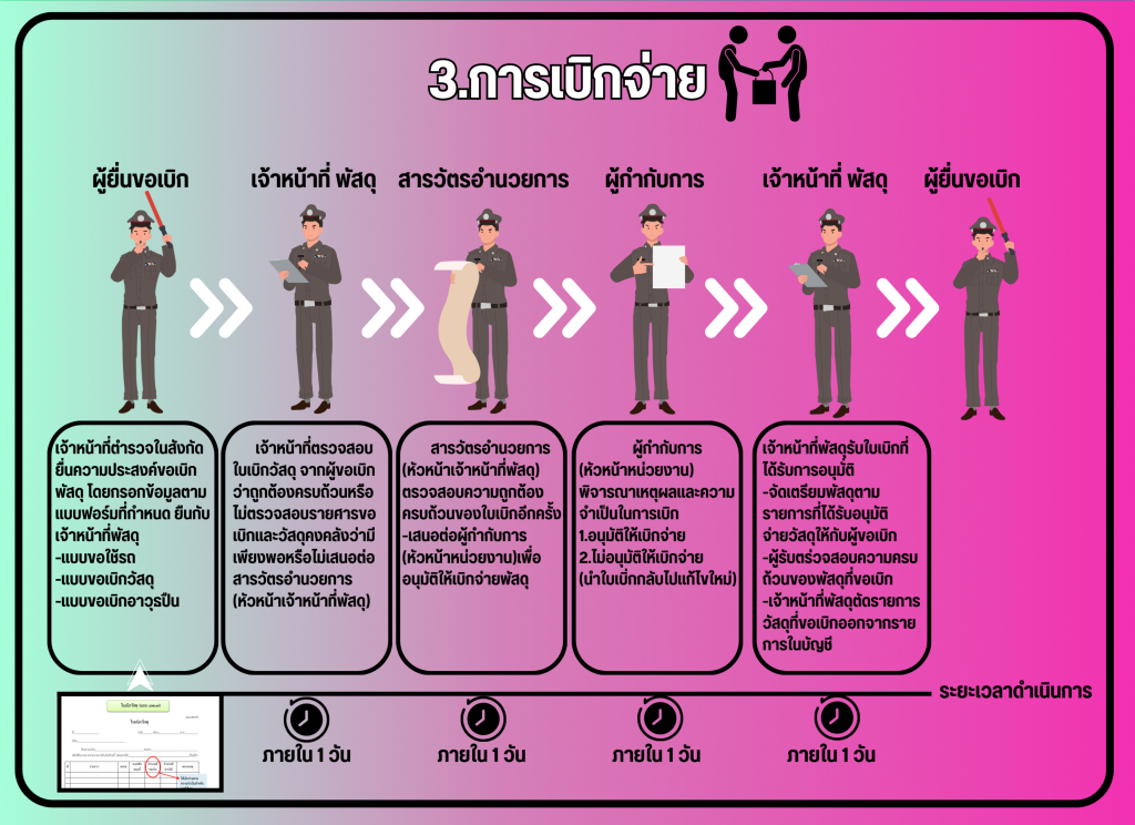 3. ตรวจสอบและตรวจนับอาวุธยุทธภัณฑ์ของสถานีตำรวจเพือ่ให้มีความพร้อมต่อการใช่งานในภารกิจประจำวัน
