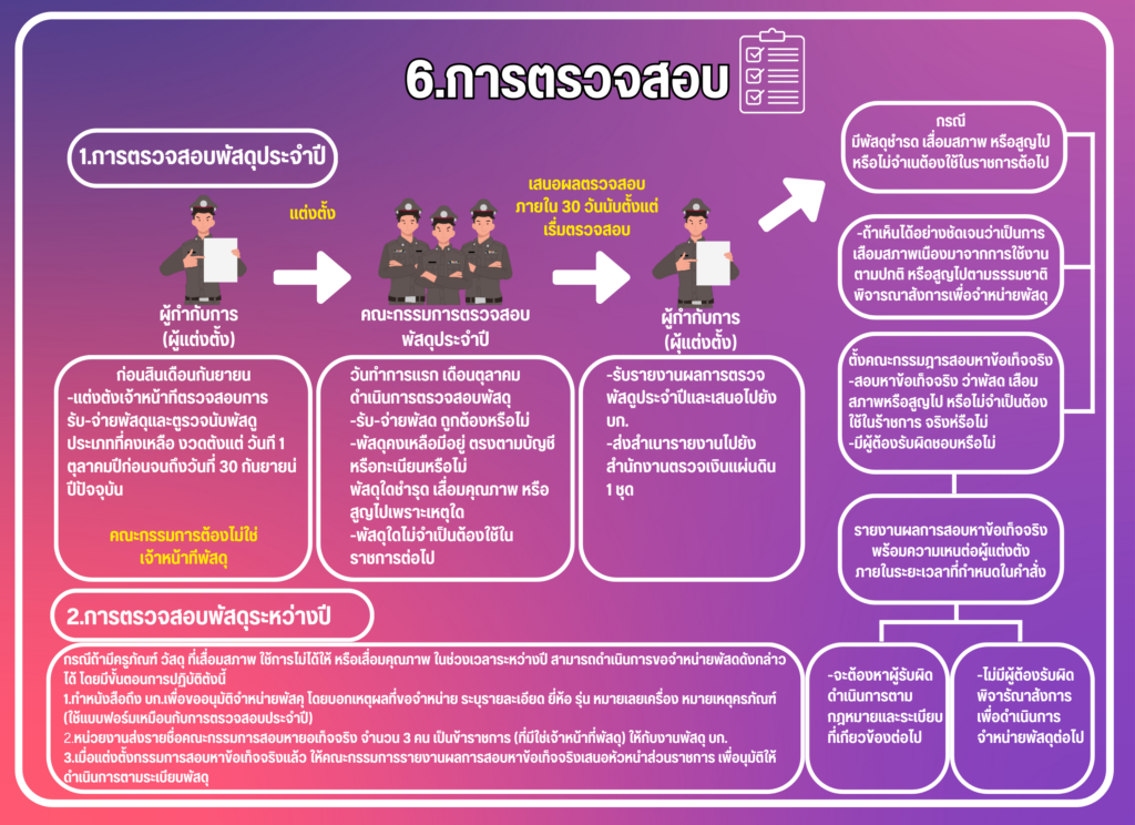 2. กำหนดแนวทางควบคุม กำกับดูแลรักษา ตรวจนับ ตรวจสอบสภาพการใช้งานทรัพย์สินของราชการ ของบริจาคโดยเฉพาะทรัพย์ประเภทที่มีความเสี่ยงในการนำไปใช้โดยมิชอบ