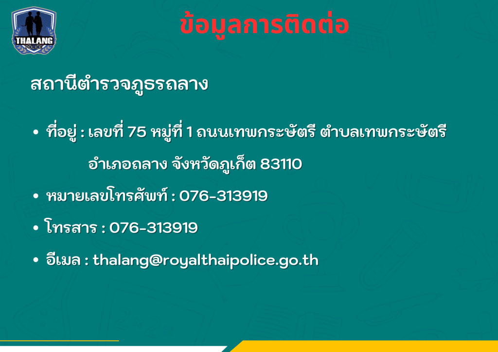 อาคาร 6 ชั้น 1 สำนักงานตำรวจแห่งชาติ ถ.พระรามที่ 1 แขวงปทุมวัน เขตปทุมวัน กรุงเทพฯ 10330