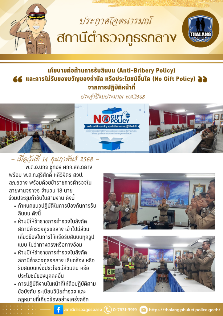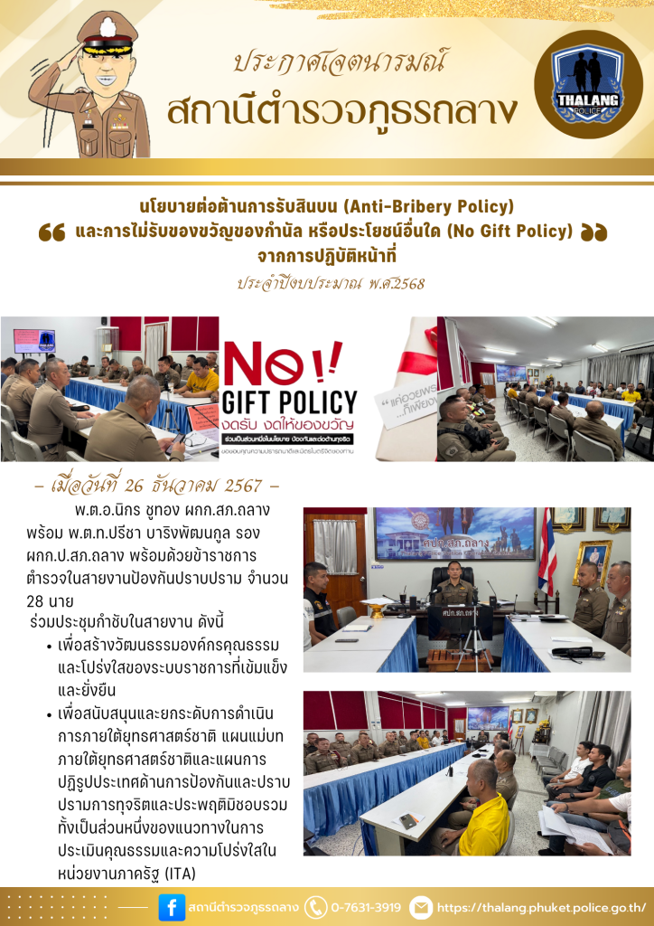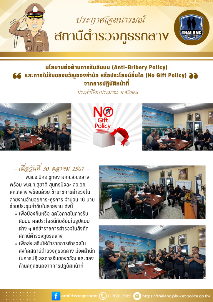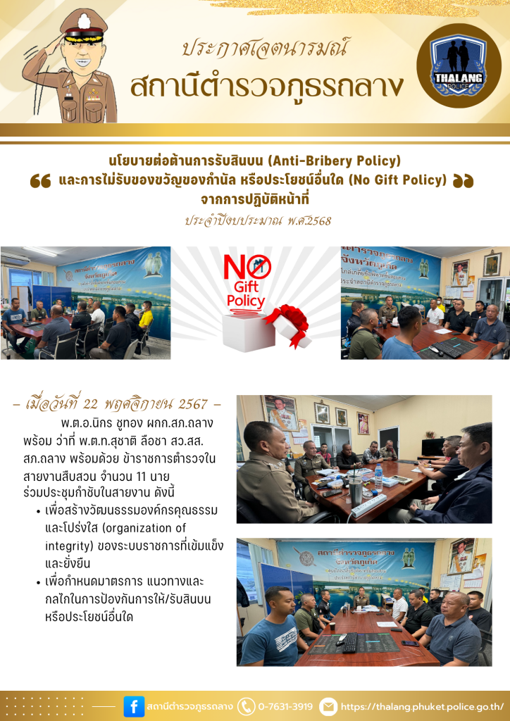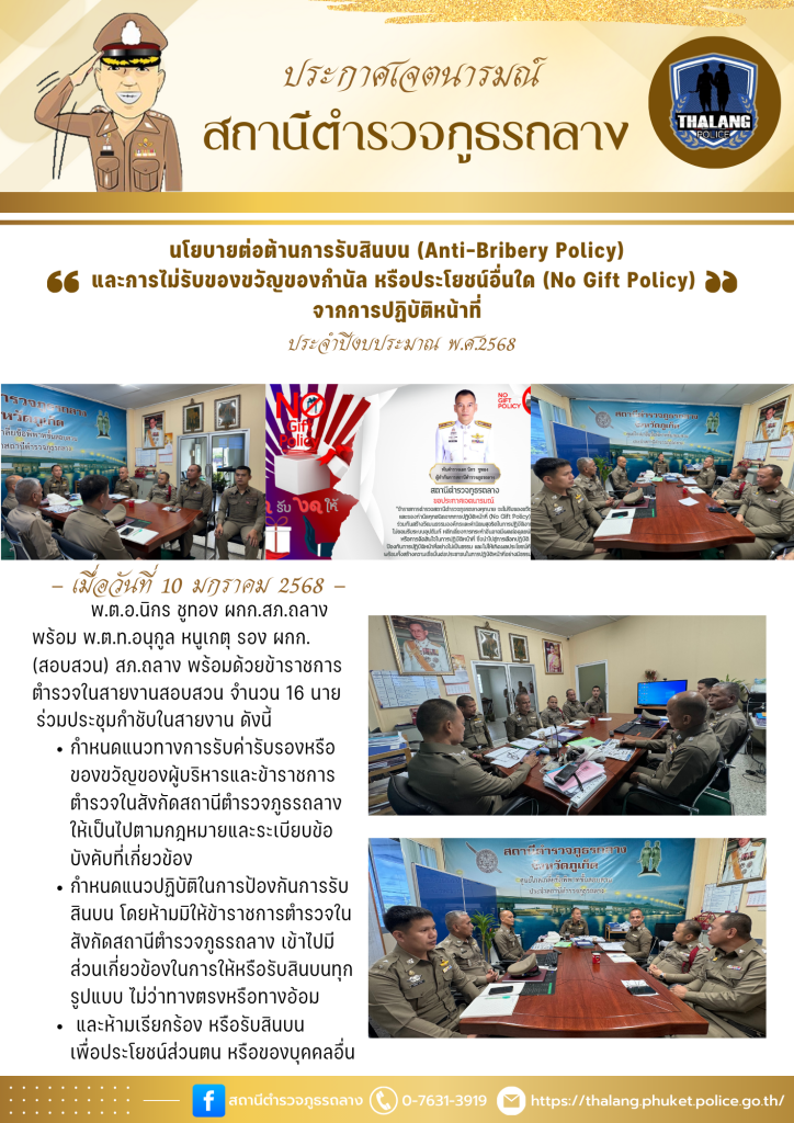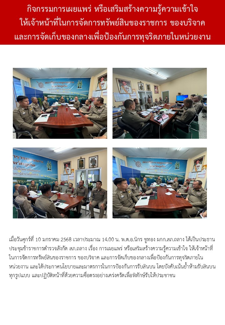 Home » ITA 2568 » 10.1 การดำเนินการเพื่อป้องกันการทุจริต » O19 การมีส่วนร่วมของหัวหน้าสถานีตำรวจ
