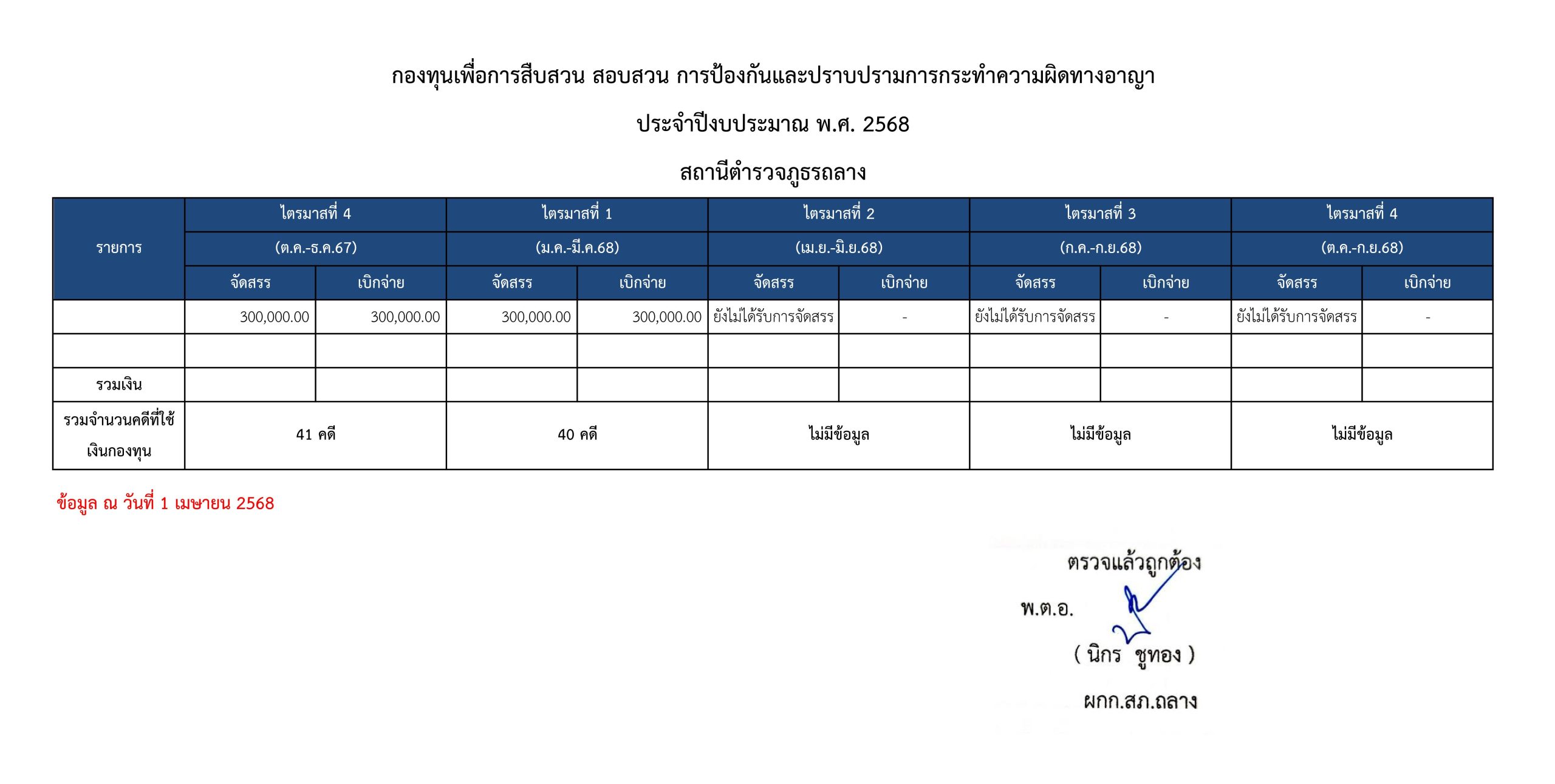 - แผนปฏิบัติการกองทุนเพื่อการสืบสวน สอบสวน การป้องกันและปราบปรามการกระทําความผิดทางอาญา ประจําปี พ.ศ.๒๕๖๘ (๘ ต.ค.๖๗)